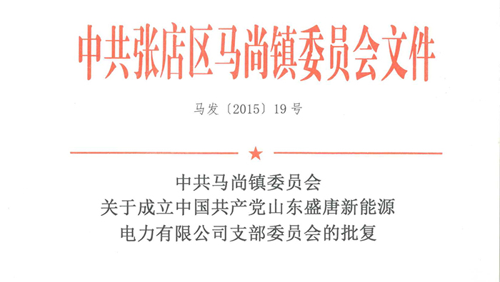 關(guān)于成立中國(guó)共產(chǎn)黨山東盛唐新能源電力有限公司支部委員會(huì)的通知